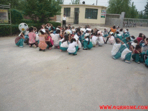 高青县台李小学纪念"九一八"防空防灾演练进行中