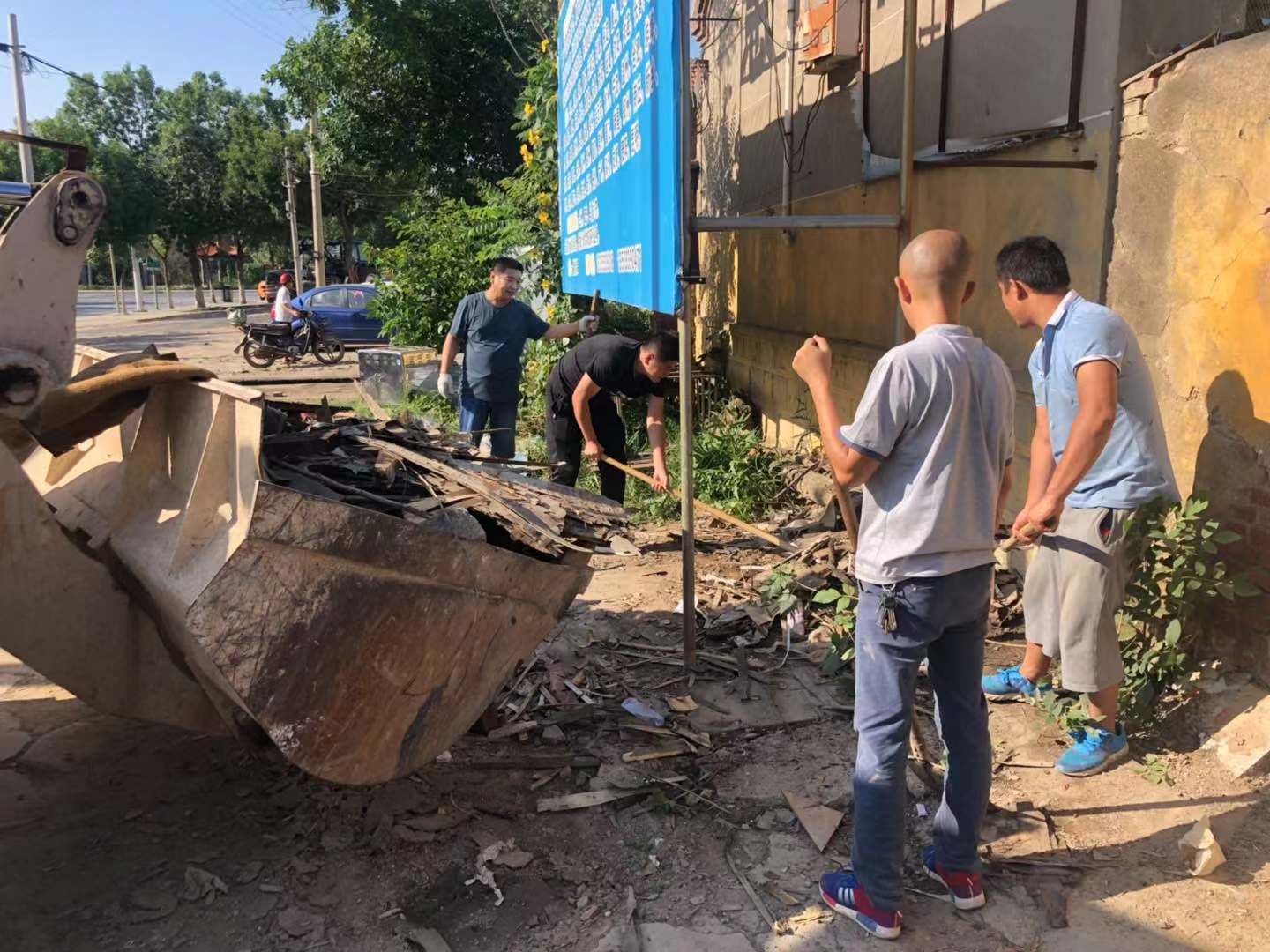 网格环境旧貌换新颜。工作人员牺牲周末休息日,烈日炎炎,冒着高温,整治网格环境卫生。上门发放《巩固发展创卫成果 共建美好和谐家园》创城彩页,制作安装健康宣传栏,进行宣传教育,对力所能及的,现场帮助清理,对思想偏执的,耐心说教,对诉说困难的,真情帮助;组织人员,拆除乱搭乱建的蔬菜架,恢复被占用的绿地;雇佣2名保洁员,每天打扫网格卫生,喷洒除草剂,清理丛生的杂草;雇佣铲车、垃圾运输车逐门逐户、大街小巷地毯式清理,彻底整治卫生死角;乱摆乱放的废旧轮胎、废旧车辆与经营商户协商一致,帮助进行变卖;局内每天安排2名同志进行网格值班,巡回检查网格环境,发现问题立即上报反映,及时解决处理。8月20日,开展网格专项整治工作以来,组织集中行动10余次,动用人力70余人次,清理店外折叠篷6个,清运垃圾、杂草50余车次,整治工作取得了良好效果。