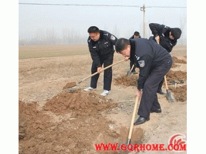 民警们挥动着手中的铁锹,挖出了一排排整齐标准的树坑,大家展开劳动竞赛,干的热火朝天,以实际行动为秀美高青建设出力尽责。